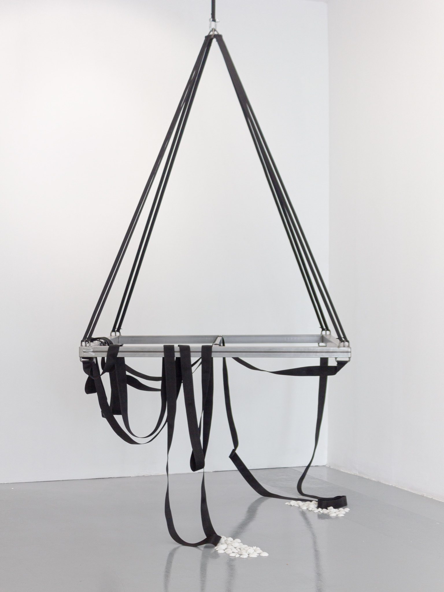 Escultura: Defensas de barco, cuerda de Nylon y Tramex, medidas variables