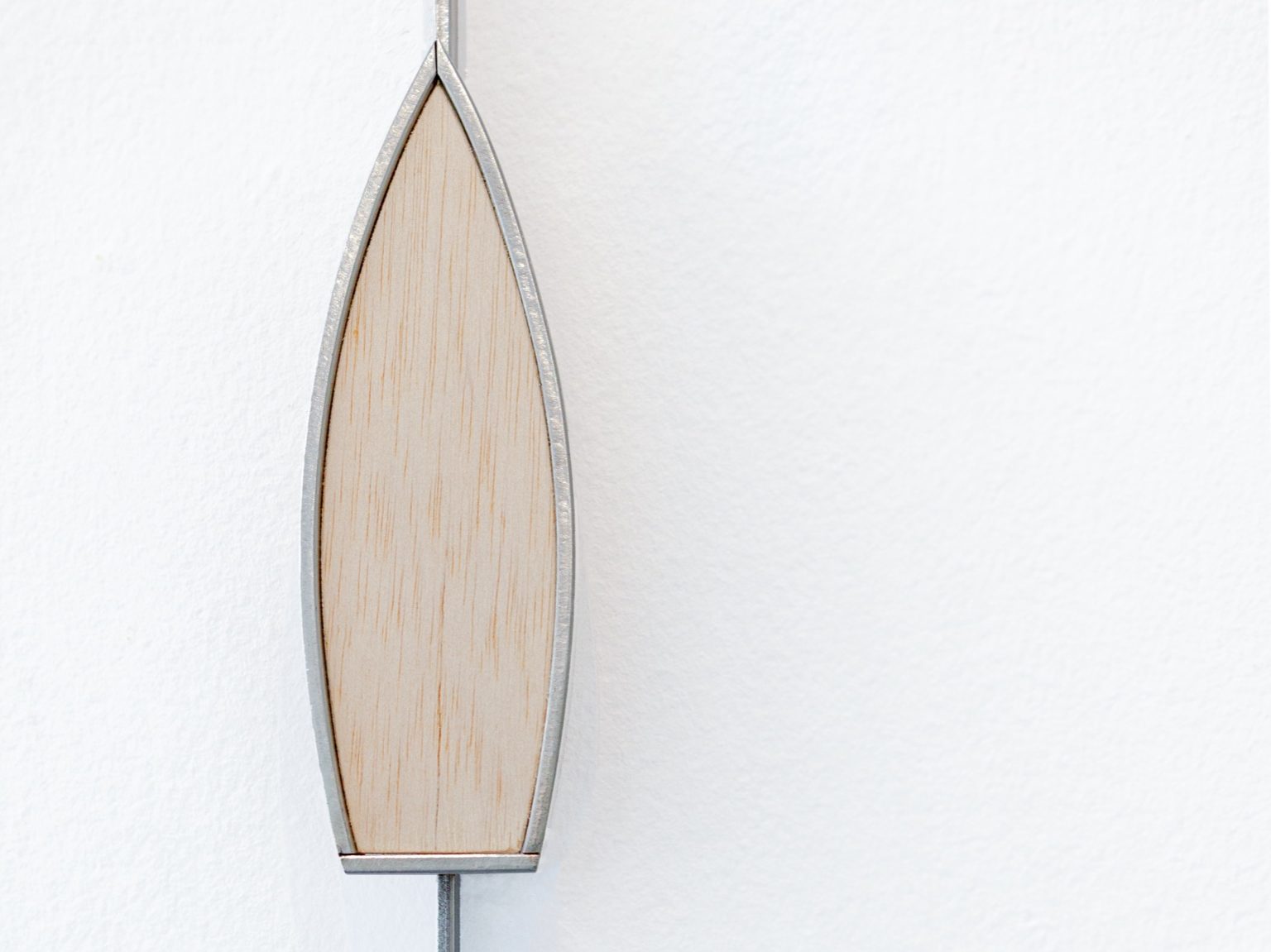 Escultura: Acero inoxidable y madera, 125 x 90 x 4 cm