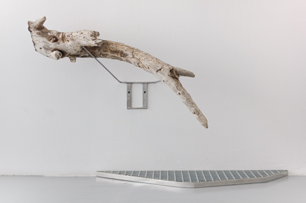 Escultura: Tronco, Tramex y acero inoxidable, medidas variables