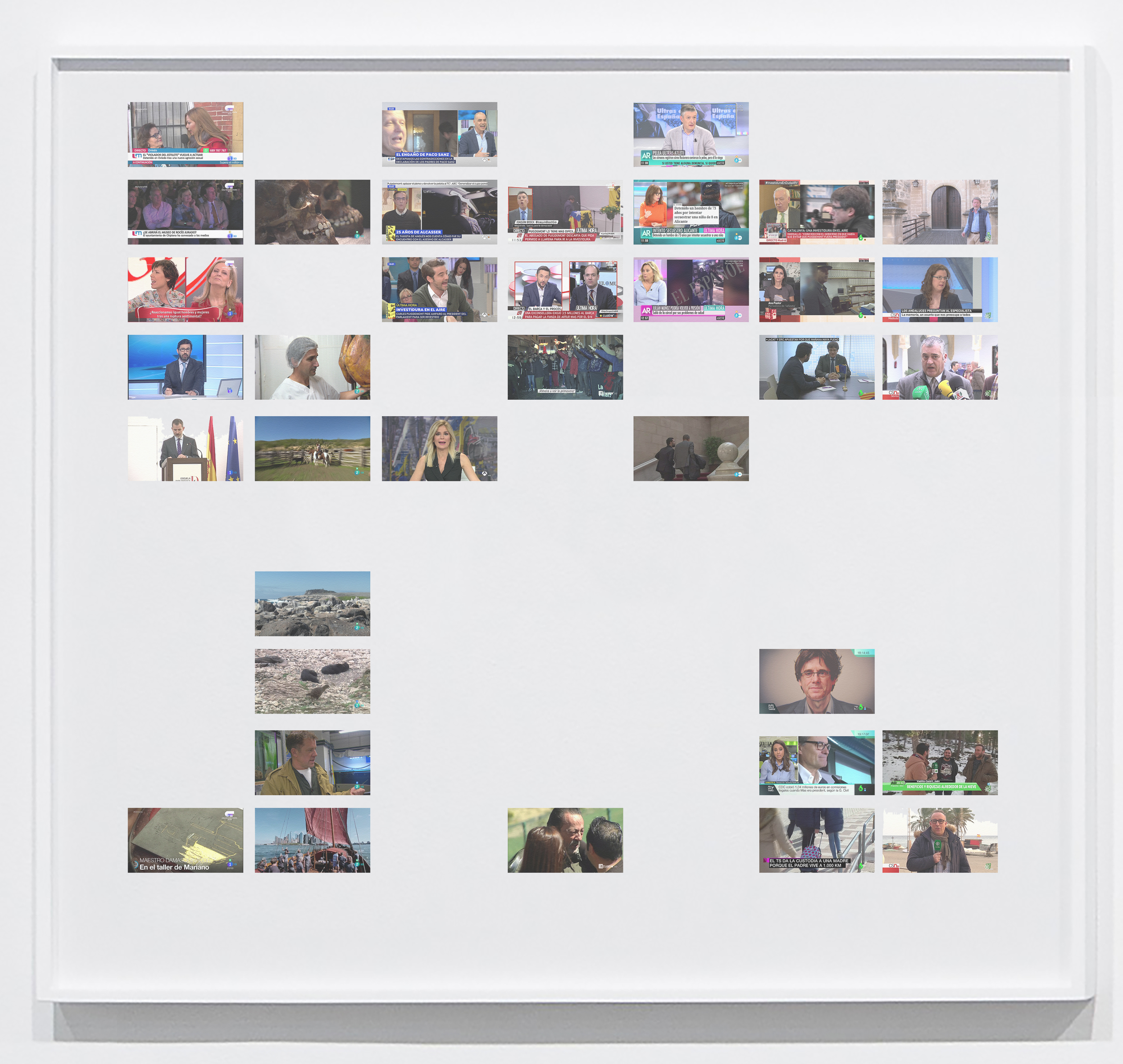 En la obra “7-3-11” (una de las más llamativas de la exposición), Alejandro Ginés nos muestra la emisión de siete cadenas de televisión durante tres días, una imagen cada hora tras once horas consecutivas. La objetividad de este proceso se ve contrastada por la subjetividad del propio artista en un proceso de selección posterior, donde las imágenes capturadas que no hacen referencia a la estricta transmisión de información (series de televisión, películas, publicidad, concursos, etc.) son desechadas. El resultado final de la obra muestra una serie de correlaciones que abre el abanico a multitud de interpretaciones que atenderán a las propias imágenes que se muestran, a la naturaleza de la cadena en cuestión, a la disparidad y similitudes según horarios, etc.