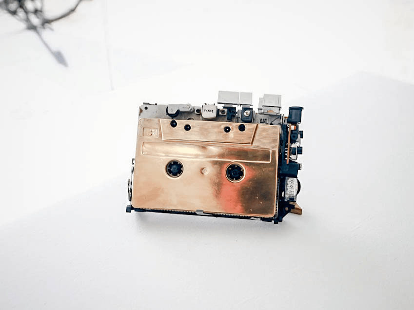 El casete también es tomado como objeto protagonista dentro de ‘Puede que esto no le guste a nadie…’. De forma más sutil y conceptual, Alejandro Ginés utiliza este dispositivo (cuya función es la de reproducir y registrar sonidos) para simbolizar la entrada y salida de información, es decir, la base de la comunicación. Para ello utiliza, por una parte, la captación mediante escaneo de uno de estos casetes en funcionamiento, plasmando el movimiento de su mecanismo interior y de la característica cinta magnética. Por otra parte, utiliza el casete para plantear una situación hipotética de una paralización completa del flujo de información. Para ello utiliza un casete de bronce que bloquea todo el mecanismo que permitiría registrar o reproducir sonidos. Una conjetura que nos hace reflexionar sobre la inherencia del intercambio de información y de la comunicación en la naturaleza del ser humano. En contraposición, Alejandro Ginés deja entrever su recelo ante el valor comercial que le han otorgado los poderes fácticos a la información y por tanto, del empleo de ésta como mercancía o bien de consumo.